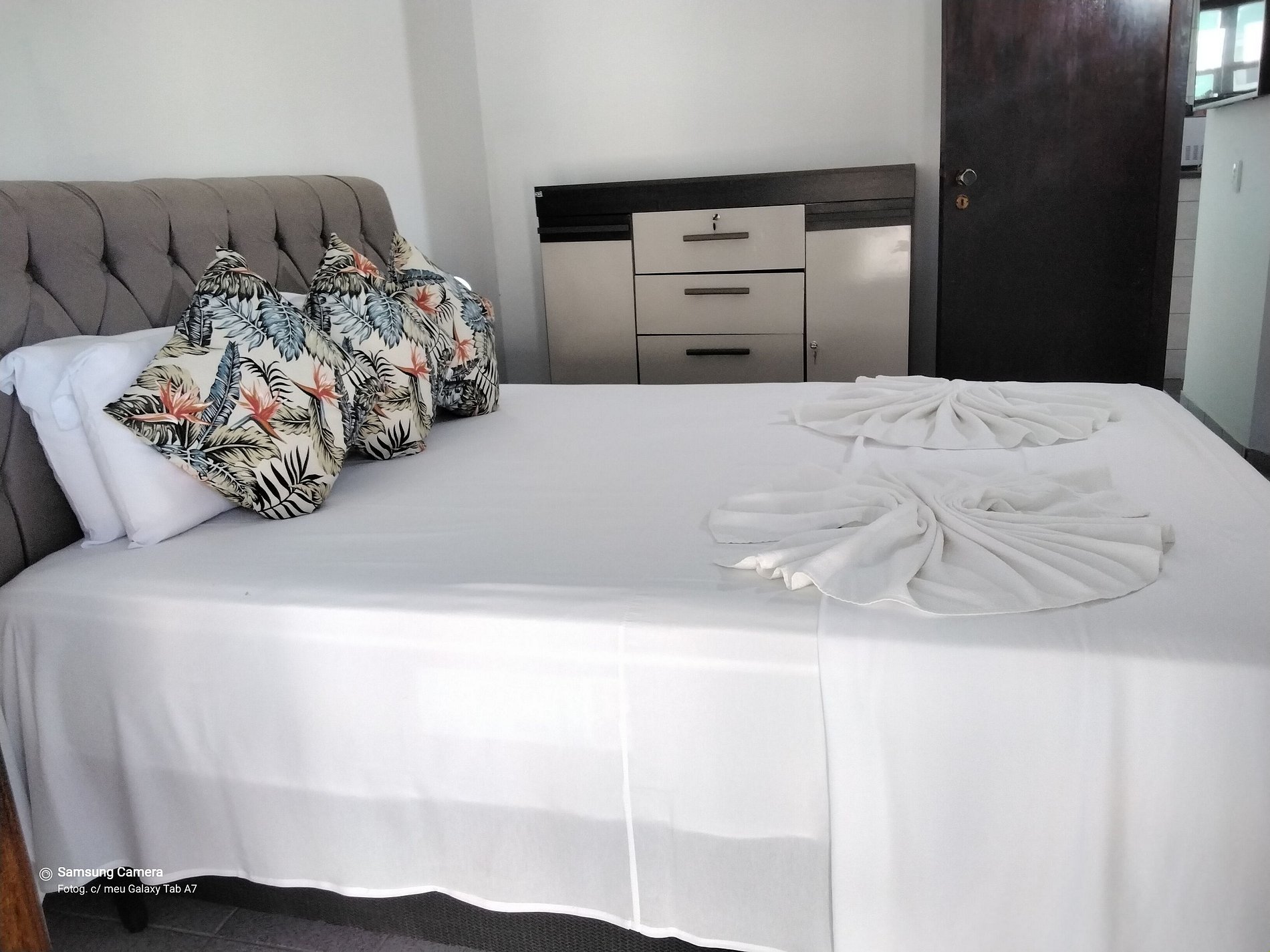 O apartamento possui roupa de cama e toalhas.
