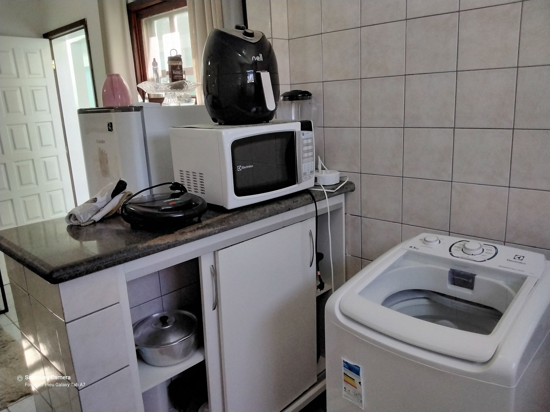 Utensílios domésticos incluídos na cozinha.