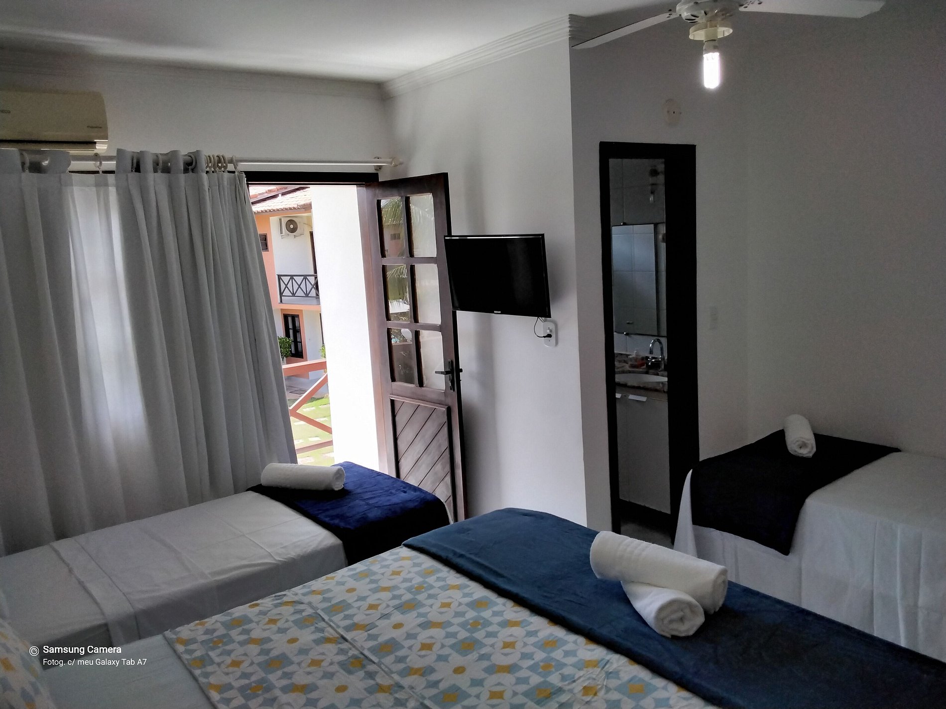 No andar superior temos 2 suites com varanda , ar condicionado split, ventilador de teto, TVS, armários e camas box que podemos fazer a composição de acordo a necessidade.